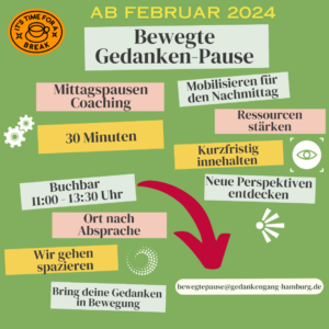 Ich biete jeden Monat einen Walk & Talk. Wir spazieren in einer Gruppe durch den Volksdorfer Wald. Jeder Walk & Talk findet unter einem anderen Thema statt. Hier findest du die nächsten Termine
